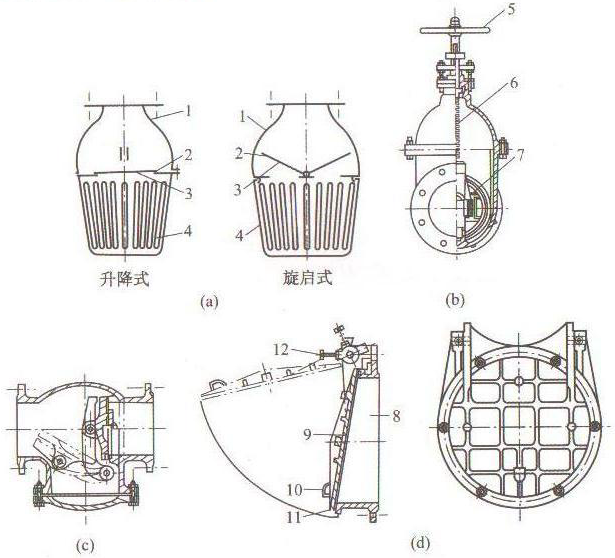 (a)底閥;(b)閘閥;(c)逆止閥;(d)拍門